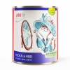 Sobald die Dose geöffnet wurde, sollte diese innerhalb von zwei Tagen aufgebraucht werden, da alle unsere Gerichte bewusst keine Konservierungsmittel enthalten. Die Aufbewahrung im Kühlschrank hilft, das Produkt möglichst frisch zu halten: unsere praktischen Schnappdeckel sind optimal, um den Geruch in der Dose zu belassen und das Produkt zu schützen. Füttern Sie aber das Gericht aber bitte nicht kalt, sondern leicht erwärmt (z.B. indem Sie etwas heißes Wasser darüber gießen). Das schmeckt nicht nur den Tieren besser, die Mahlzeit kann so auch leichter verdaut werden.